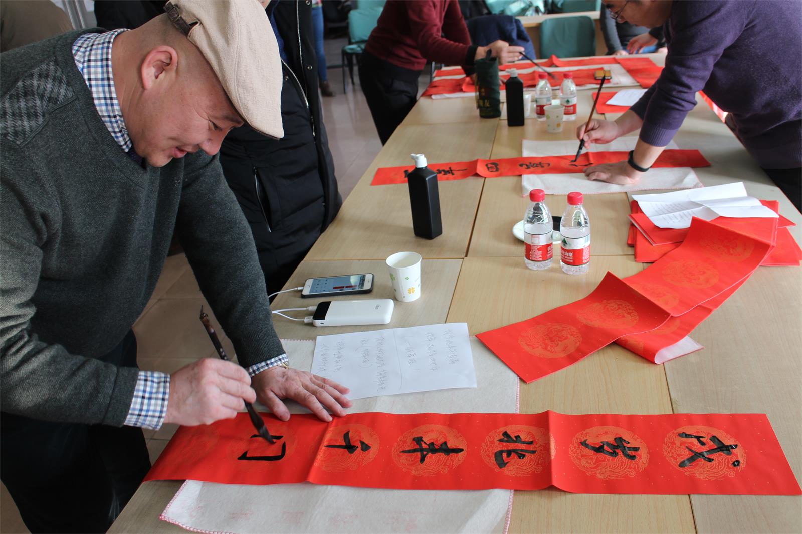 今年當(dāng)然也不能例外!2月2 日下午15 點至 17 點30分,市書法家協(xié)會的多位優(yōu)秀書法家準(zhǔn)時來到五樓會議室為本院職工們免費書寫春聯(lián),大伙兒熱情很高, 現(xiàn)場氣氛歡快,不一會兒各色字體,不同內(nèi)容的大紅春聯(lián)就鋪滿了各個角落。